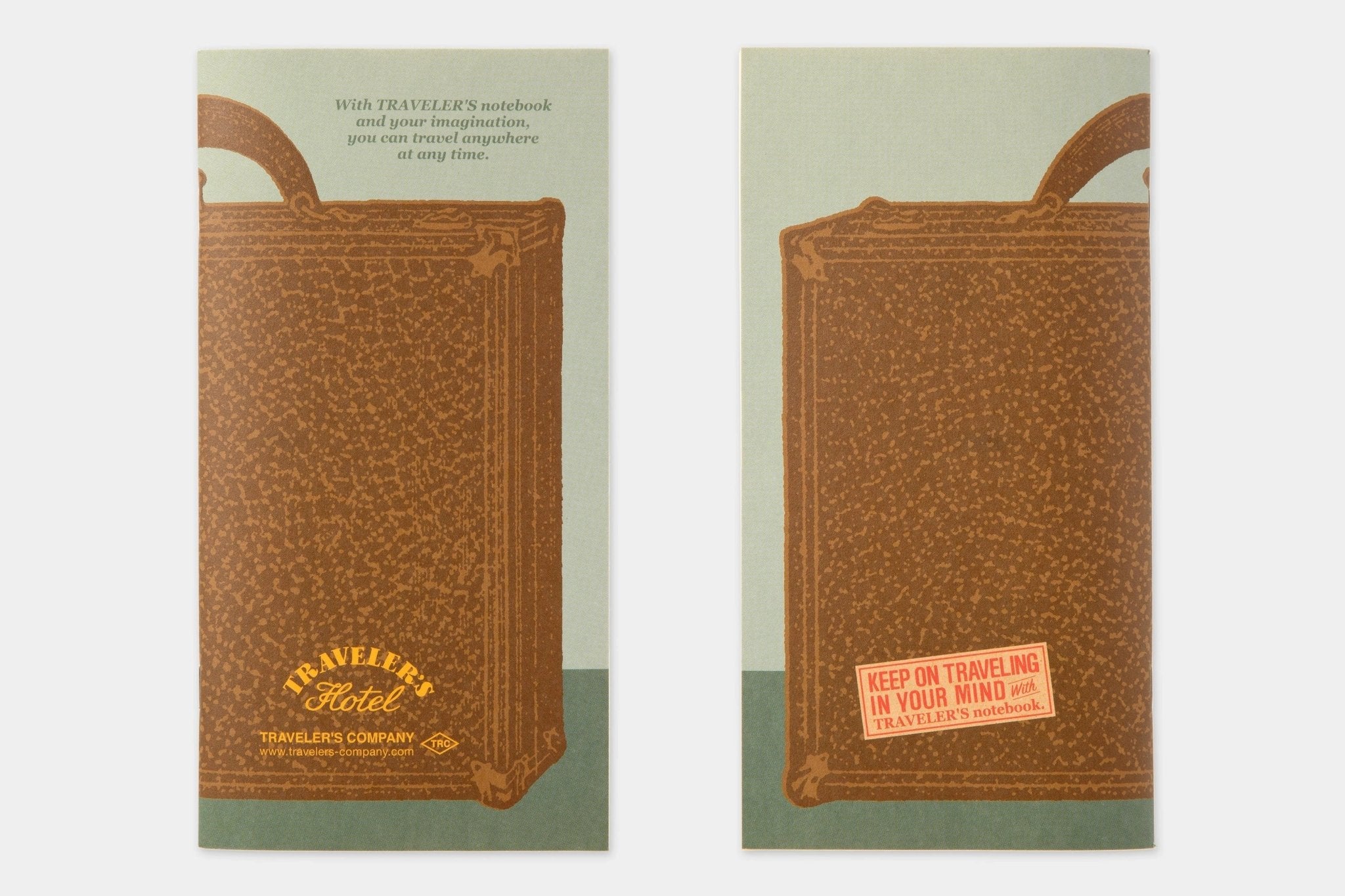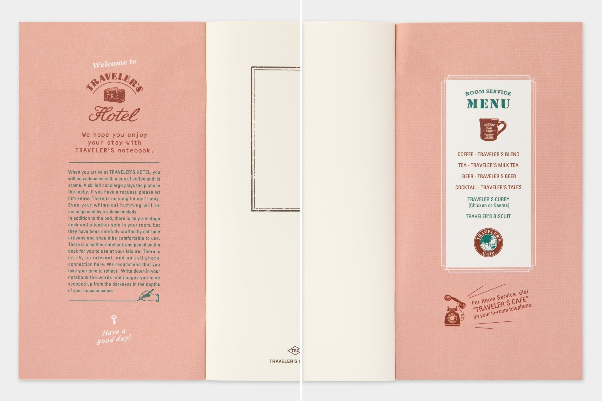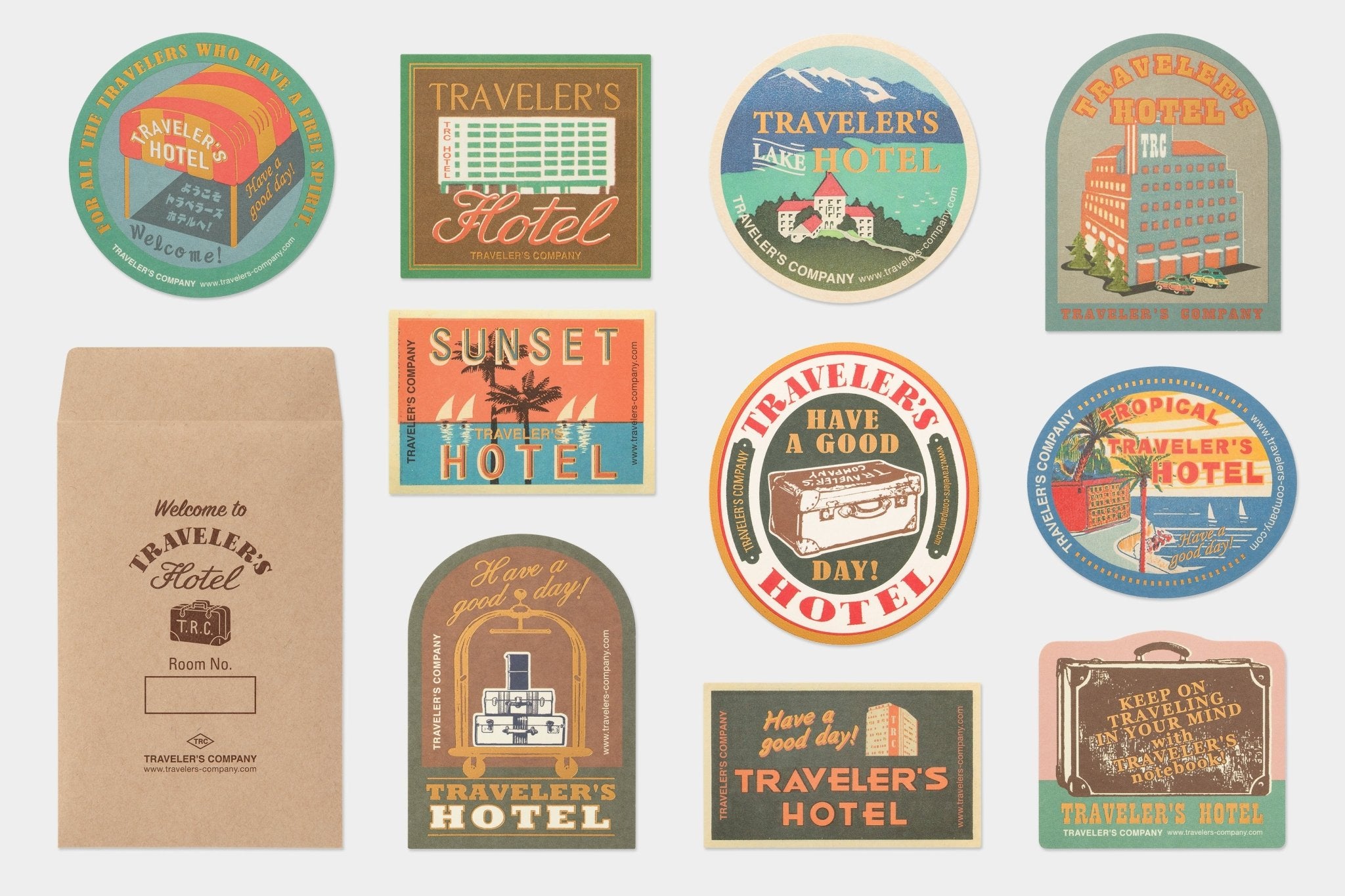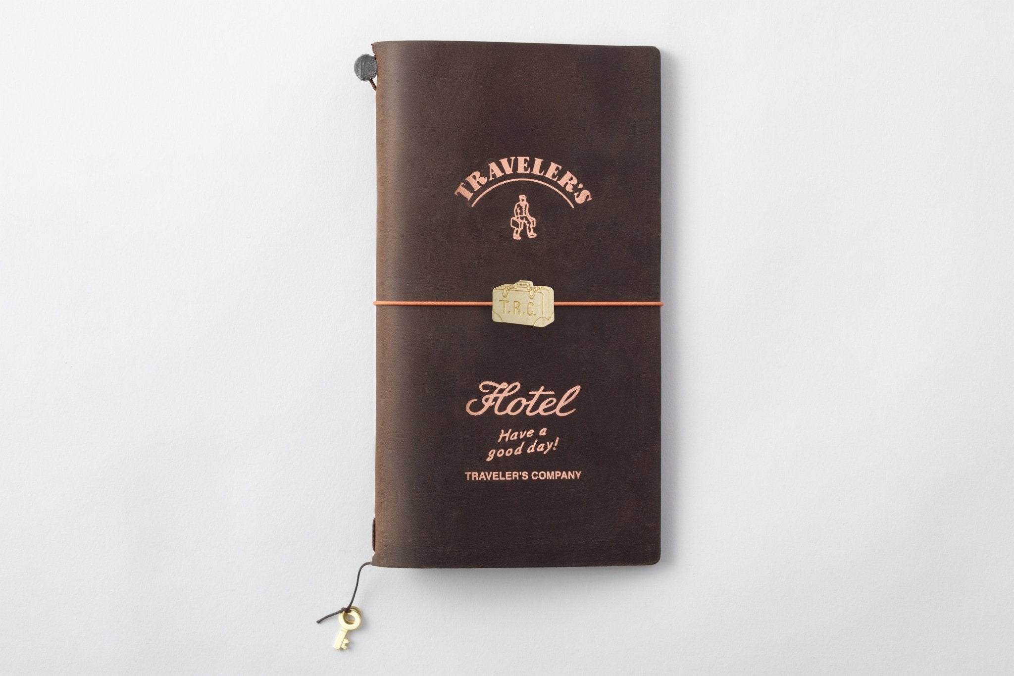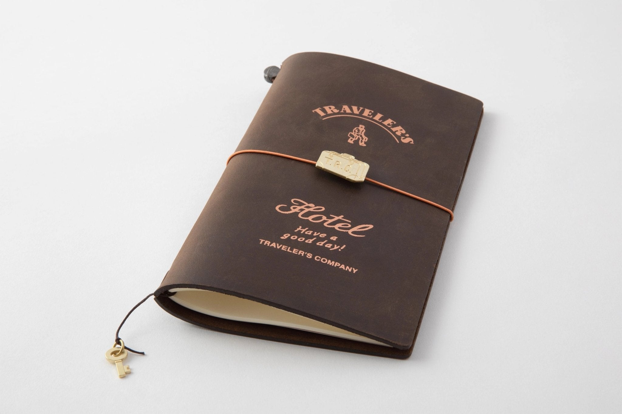 Welcome to TRAVELER'S Company's imaginary land, with its own Hotel, Airline, Train and Record Company. Imagine this world and these sets are the remnants and souvenirs we bring back from travel. The TRAVELER'S HOTEL is a set of a brown regular size TN and customized items of their imaginary hotel company.