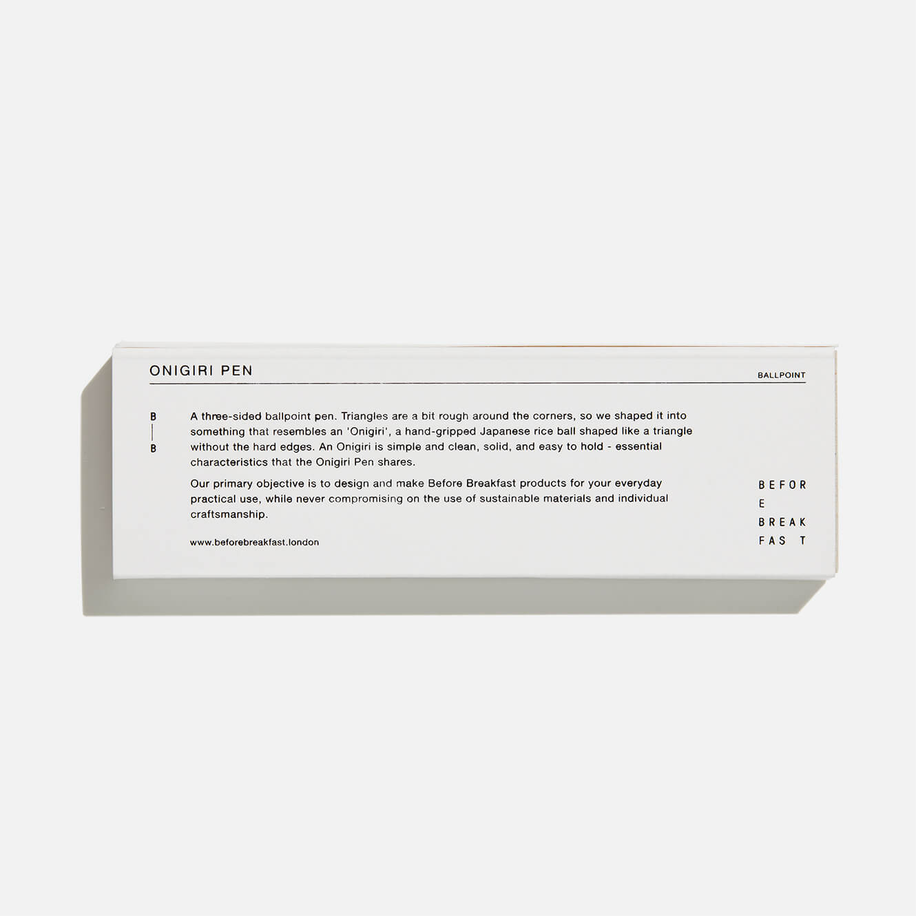 A three-sided rollerball pen. Triangles are a bit rough around the corners, so we shaped it into something that resembles an 'Onigiri', a hand-gripped Japanese rice ball shaped like a triangle without hard edges. An Onigiri is simple and clean, solid, and easy to hold - essential characteristics that the Onigiri Pen shares.