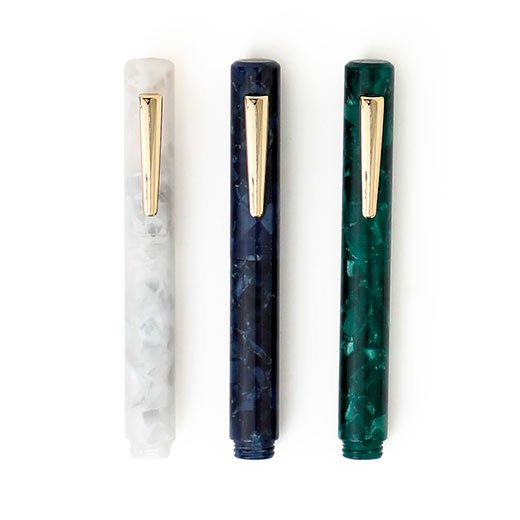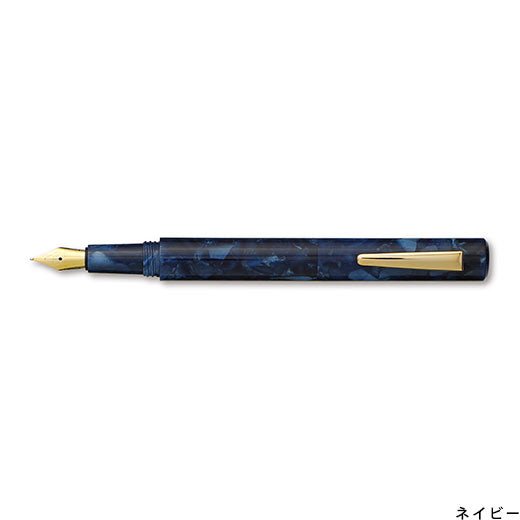 A fountain pen with a beautiful marble pattern. The fine (F) nib on the acrylic shaft, which changes its expression depending on the angle, has a 24-karat gold plate finish for a smooth writing feel. The short size with a clip makes it easy to carry. It comes in a box and is also recommended as a gift.
