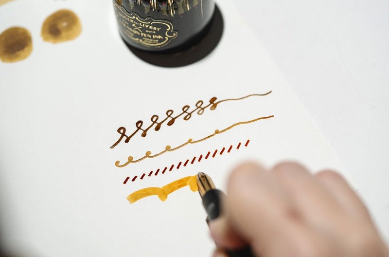 The bottle contains KWZ iron gall ink from Poland. The organic acid can effectively protect pen tips, and the lack of ink particles won’t cause blockage in the bottle. The ink color has many layers and gradually becomes darker with age. However, there’s no need to keep away from the sun, as it’s resistant to washing and fading. It is especially suitable for use on documents that need long term storage.