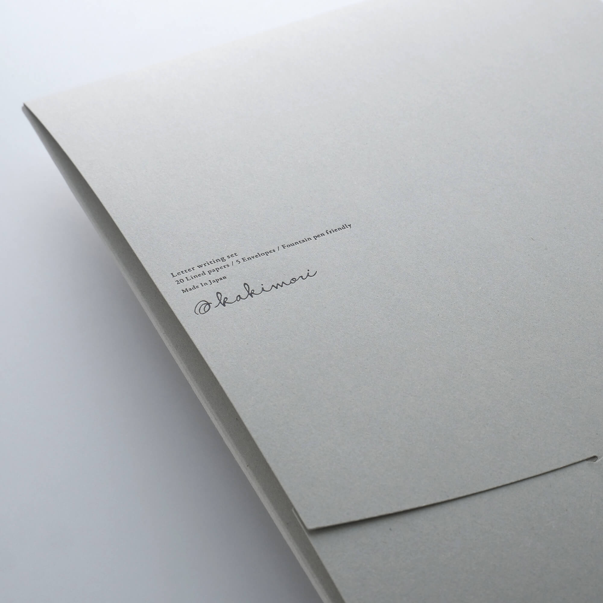 20 letter papers (Shinkyokushi paper/lined), 5 envelopes (White/Greyish blue/Smoky pink/Ash/Pale green). Folder can be repurposed as paper storage.