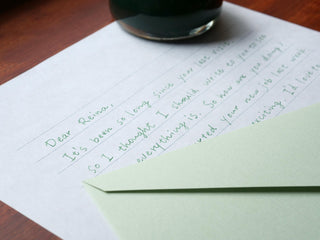 No more leftover envelopes — our generous set includes plenty of paper in case you make mistakes or need more sheets. Fountain pen friendly Shinkyokushi paper printed in blue-grey provides the perfect backdrop for your handwriting.