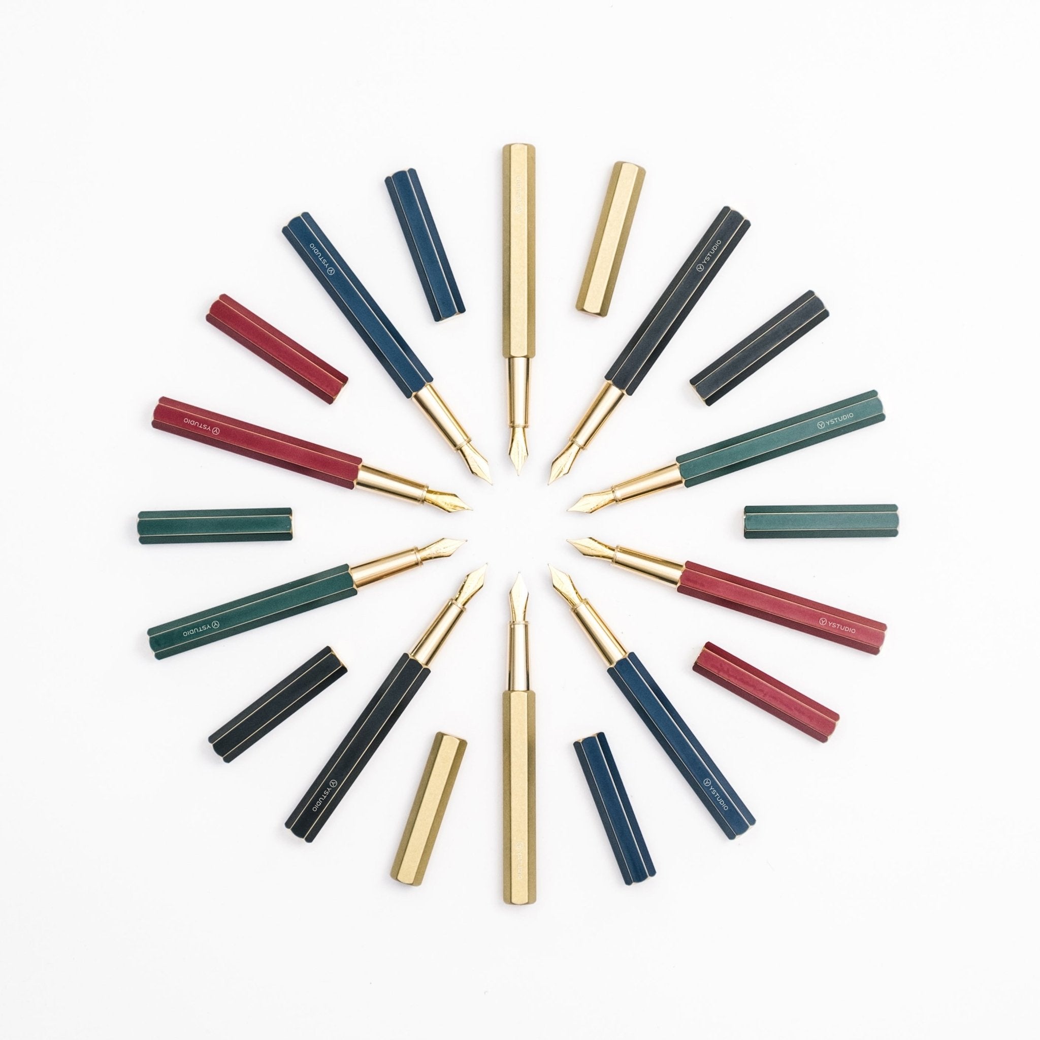 Cut from solid brass, the pen's hexagonal body follows the brand's most popular design, pure and simple, with a thicker pen body and just the right balance of weight and solidity.