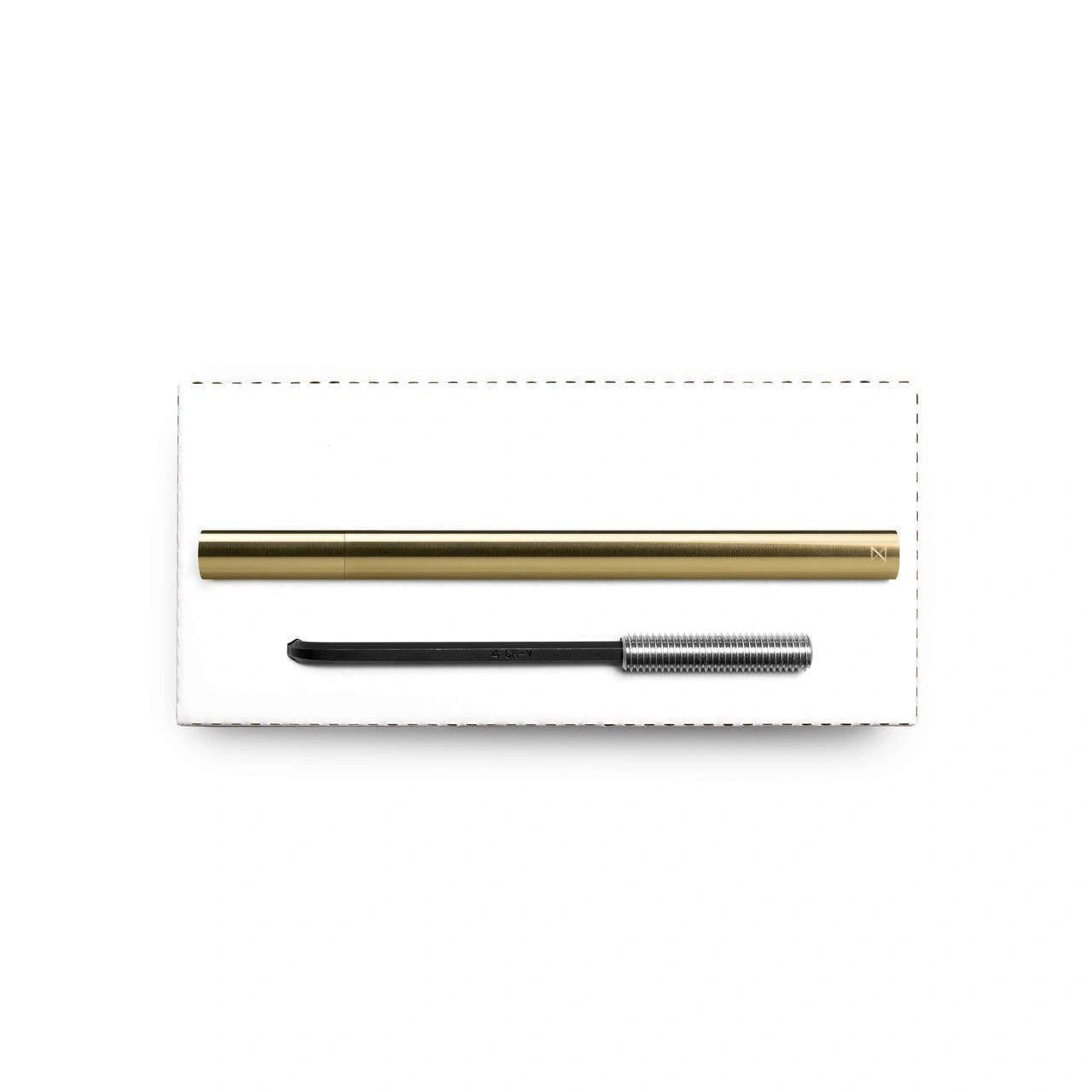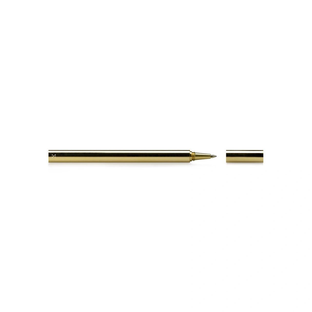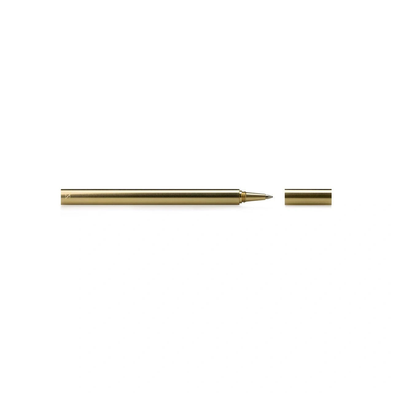 A pen + cap precision machined from a single bar of solid brass. The cap is a screw fit and can be taken off with a single half twist. The refill is replaced simply by removing the grub screw at the base of the pen with an allen (hex) key.