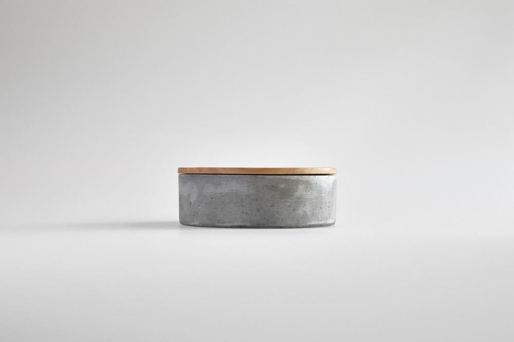 The Round Concrete container is used to store bits & bobs (dry spices, loose change & keys etc).