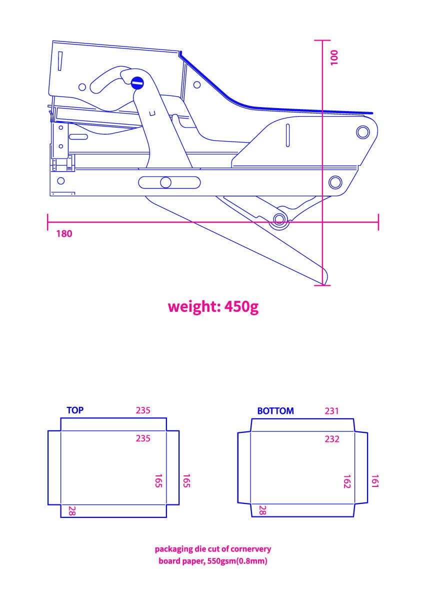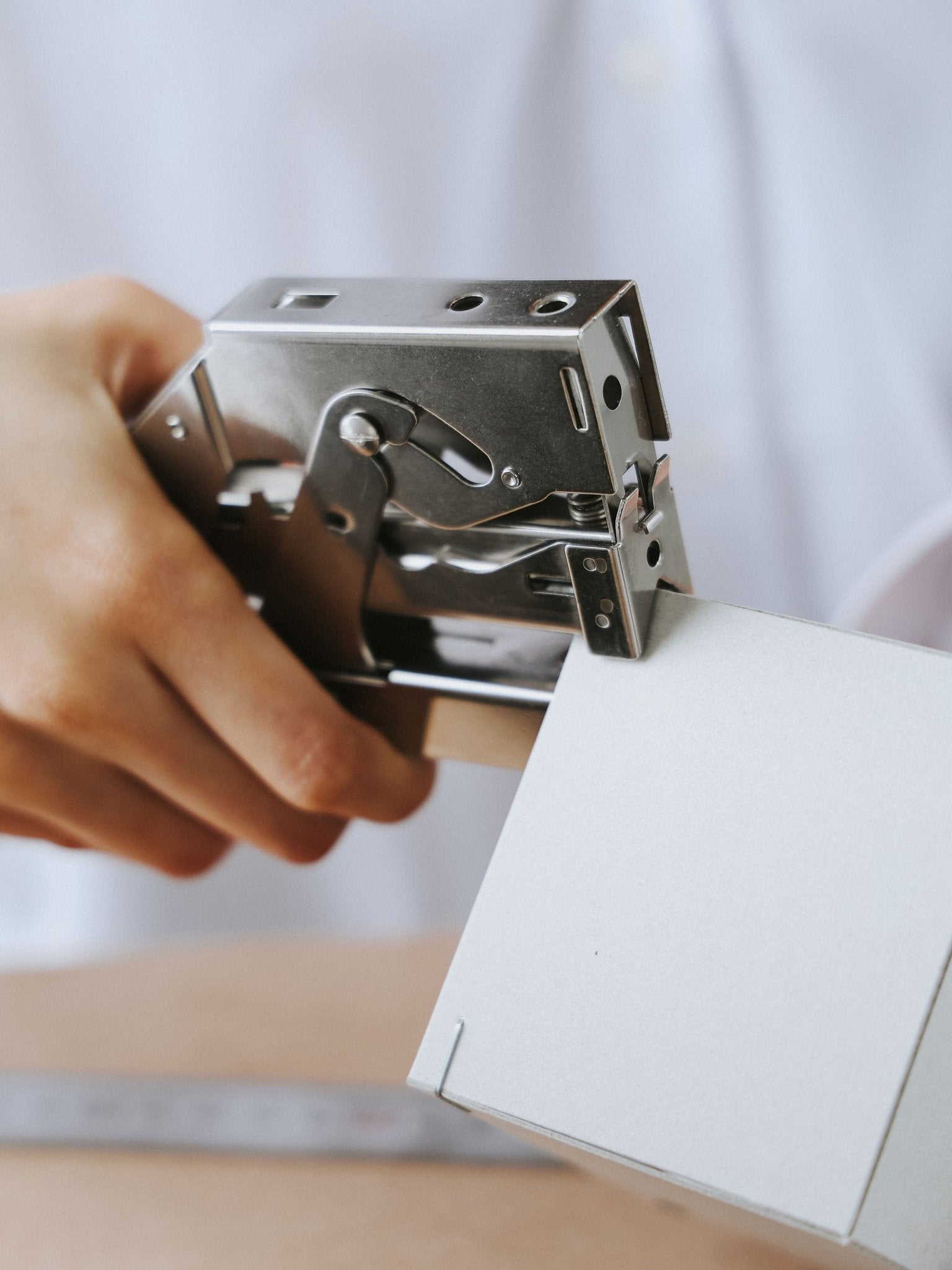 The Cornervery stapler is a stapler that fixes the corners of the box, not the flat kind used with paper. Make your own packaging boxes made of paper and the specific size you want.