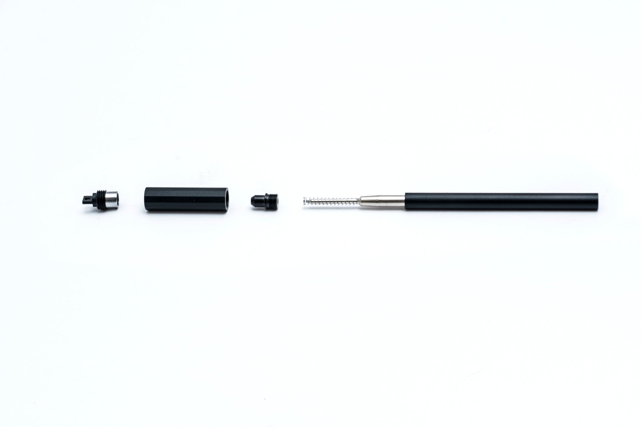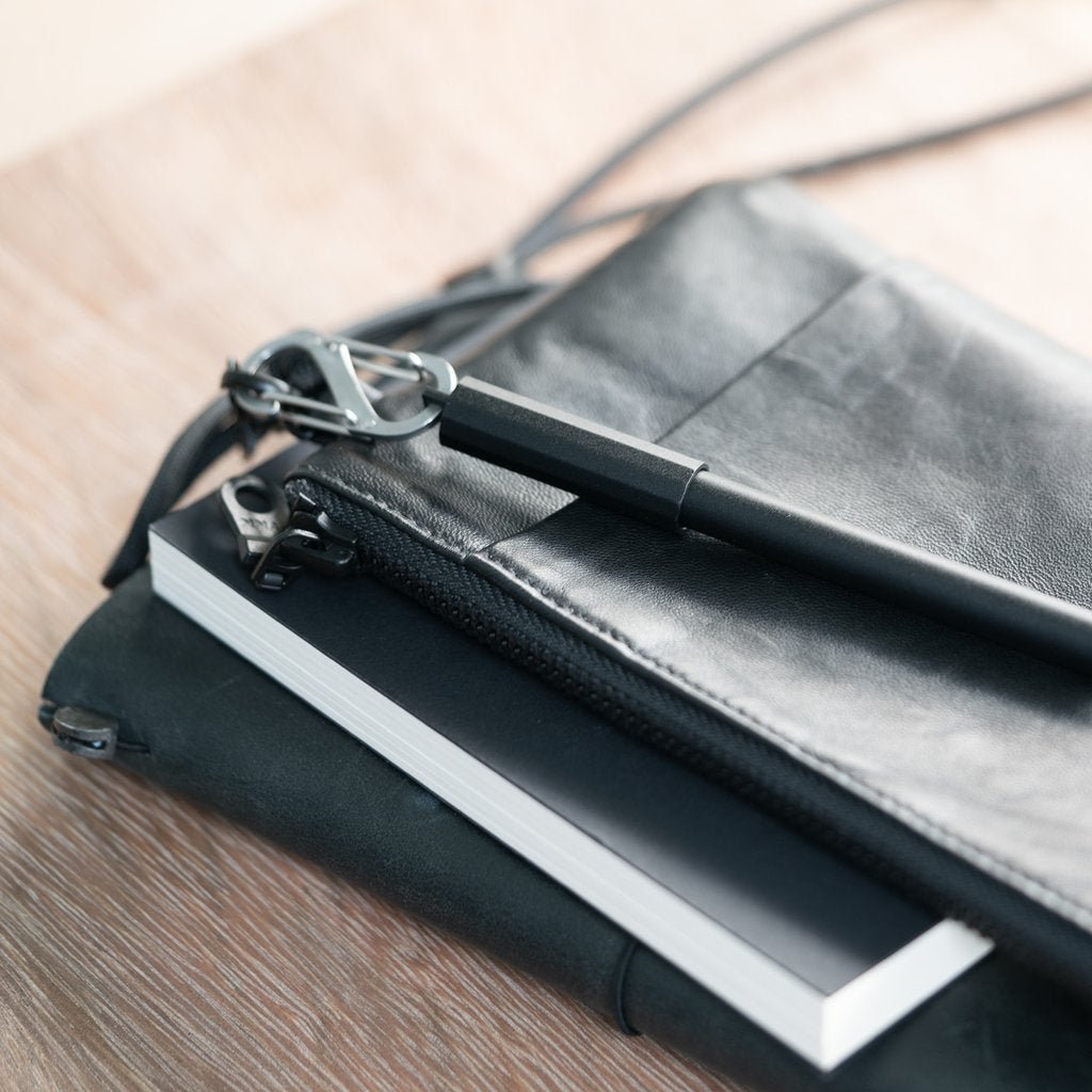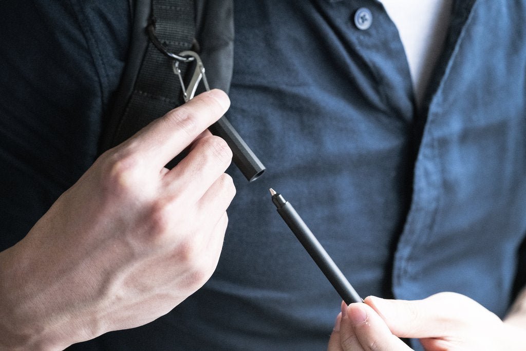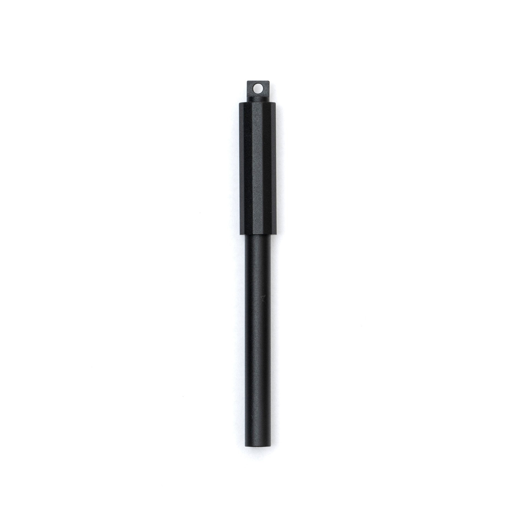 Magnetic Pen is made of aluminum alloy and weighs a mere 18.8g, turning writing tool into a light portable everyday item. The tip of the pen features a powerful magnetic structure that instantaneously pulls and holds the cap in place. Various accessories can be attached to the top of the cap to meet various needs, so users can hang or carry the pen anywhere and everywhere. The anodized matte black surface is subtle and mysterious, giving the common daily item an unique style that stands out.