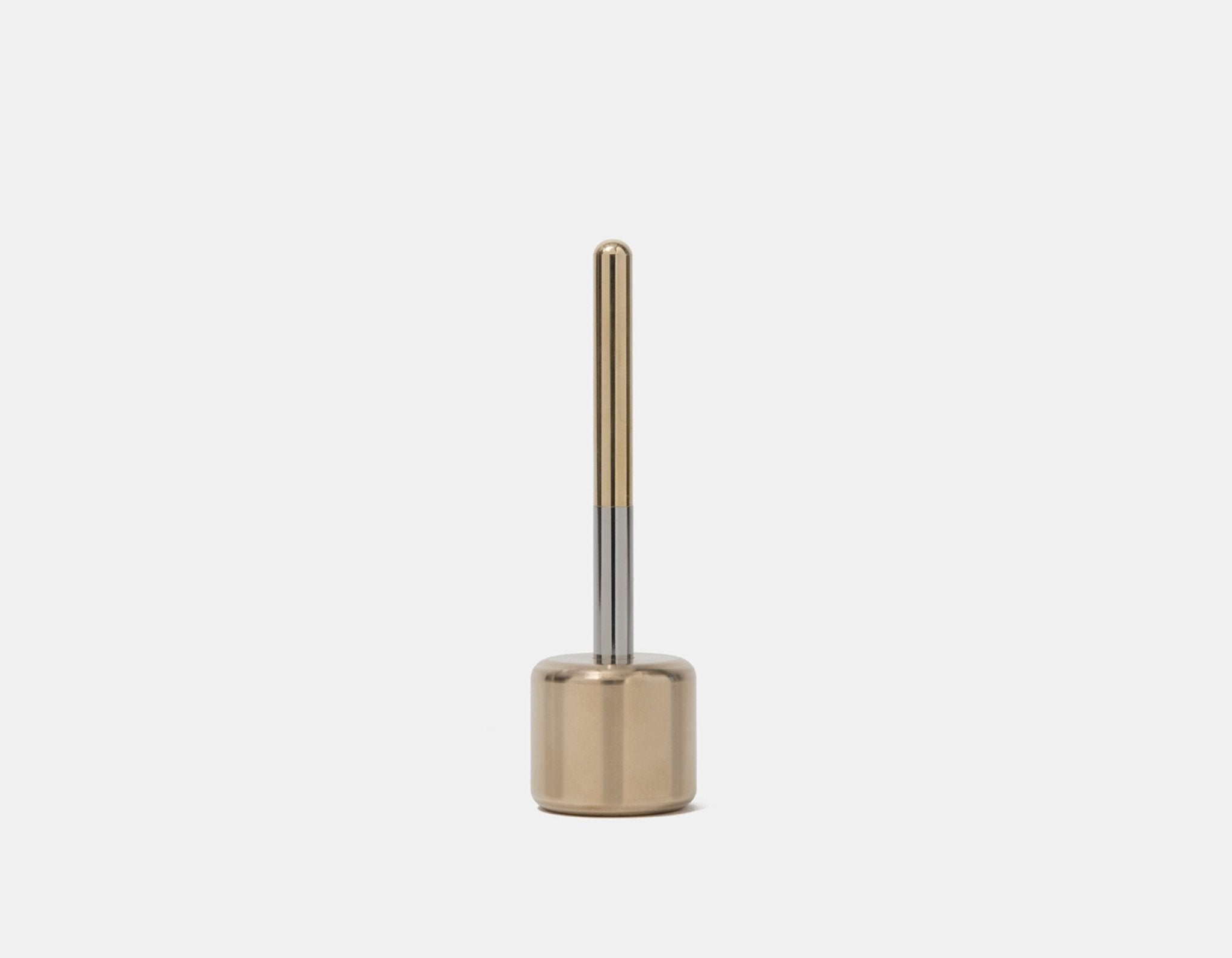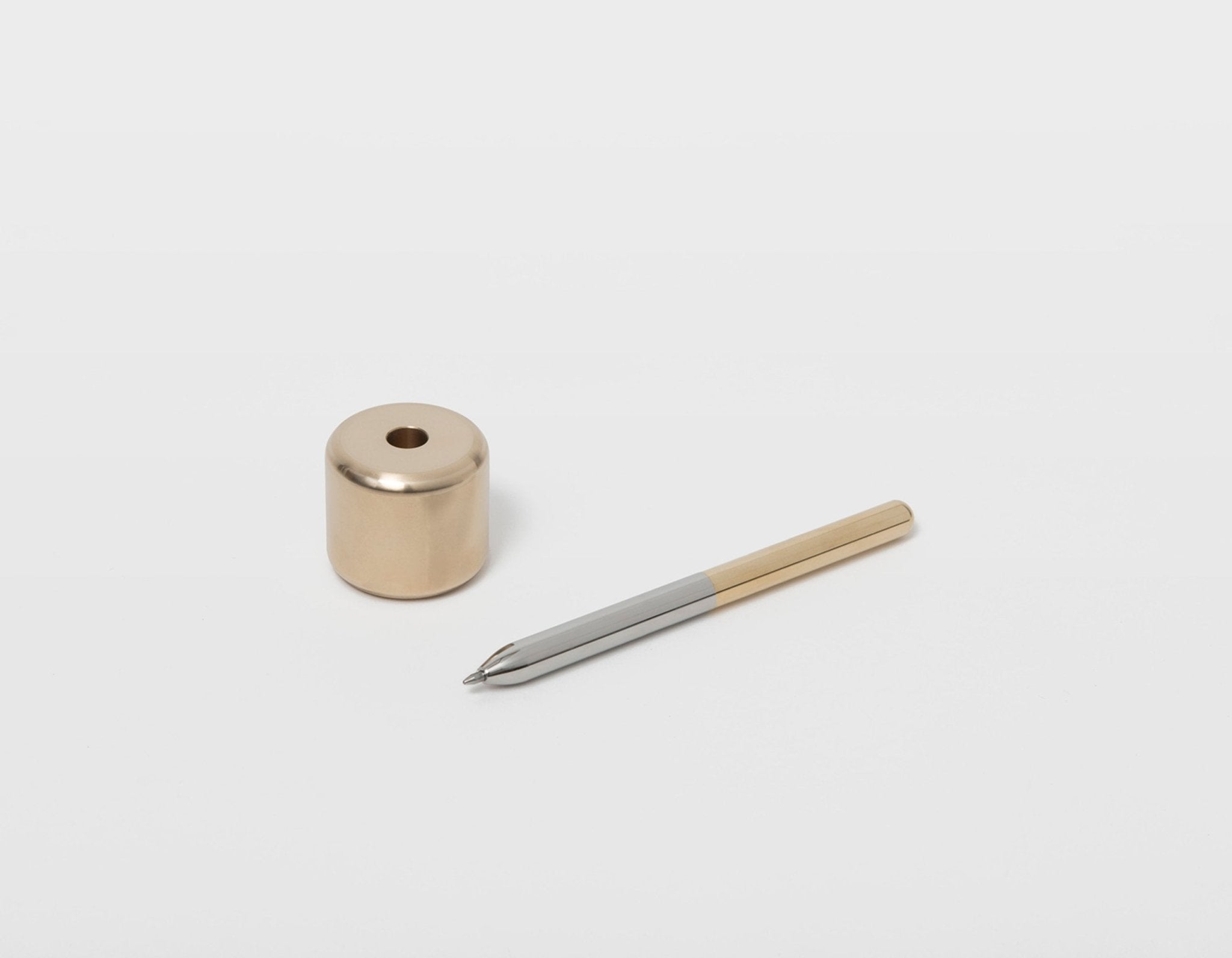 This desk pen design is the 5th version we have produced with the latest refinements in proportion and finish. As with all the products in the Gemini family warm brass is contrasted with cool stainless steel. The brass forms a patina from your touch which is emphasized when put next to an unchanging material like stainless steel.