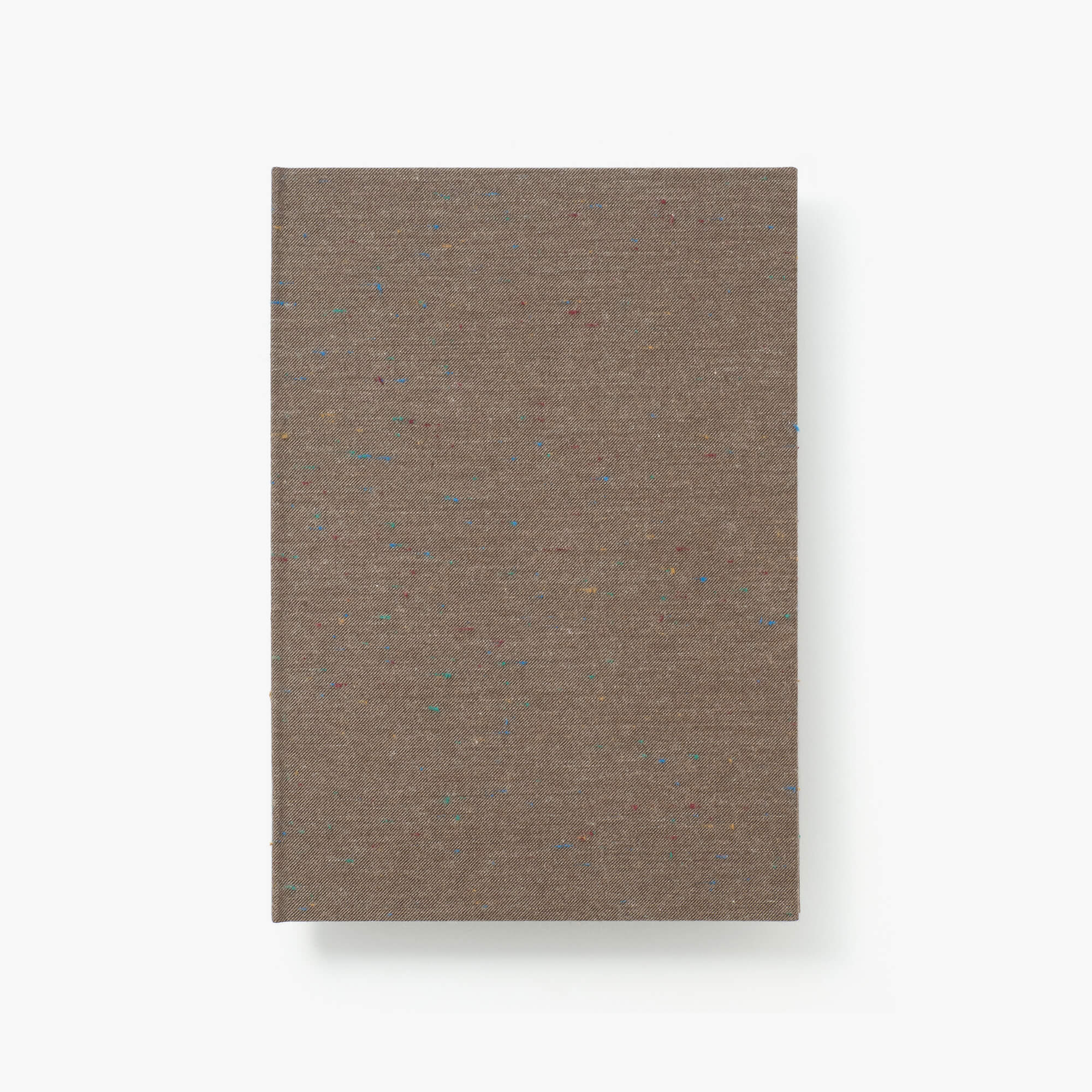 The notebook features a tactile garment fabric by Shimada Textiles, a manufacturer of Banshu-ori textiles. Banshu-ori is a regional woven textile made using the sakizome technique in which yarns are dyed before weaving. The company creates original fabric designs with skilled artisans across all stages of production.
