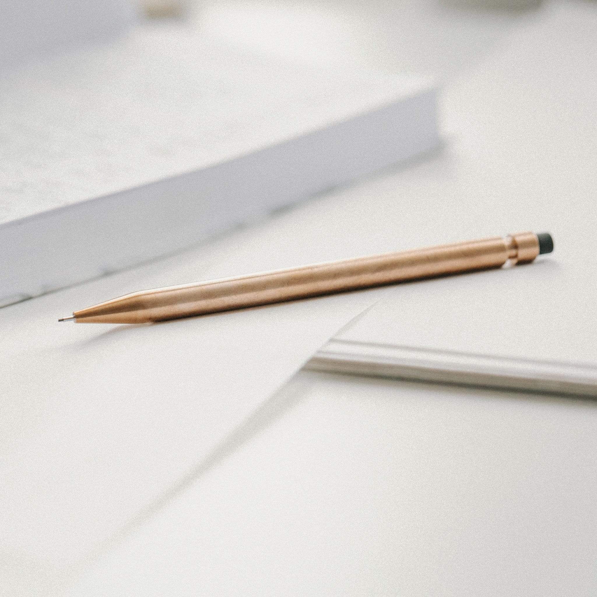 Every Modern Fuel pencil is carved out of a solid block of metal and contains no plastic parts. The pencil is an engineering marvel that fits together seamlessly. No two pencils are exactly alike, the cone and body are mated together during production for a flawless presentation.