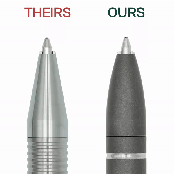 Our machines hold 0.0005" tolerances. We inspect every pen under 12x magnification for blemishes prior to shipping. You will feel the quality.
