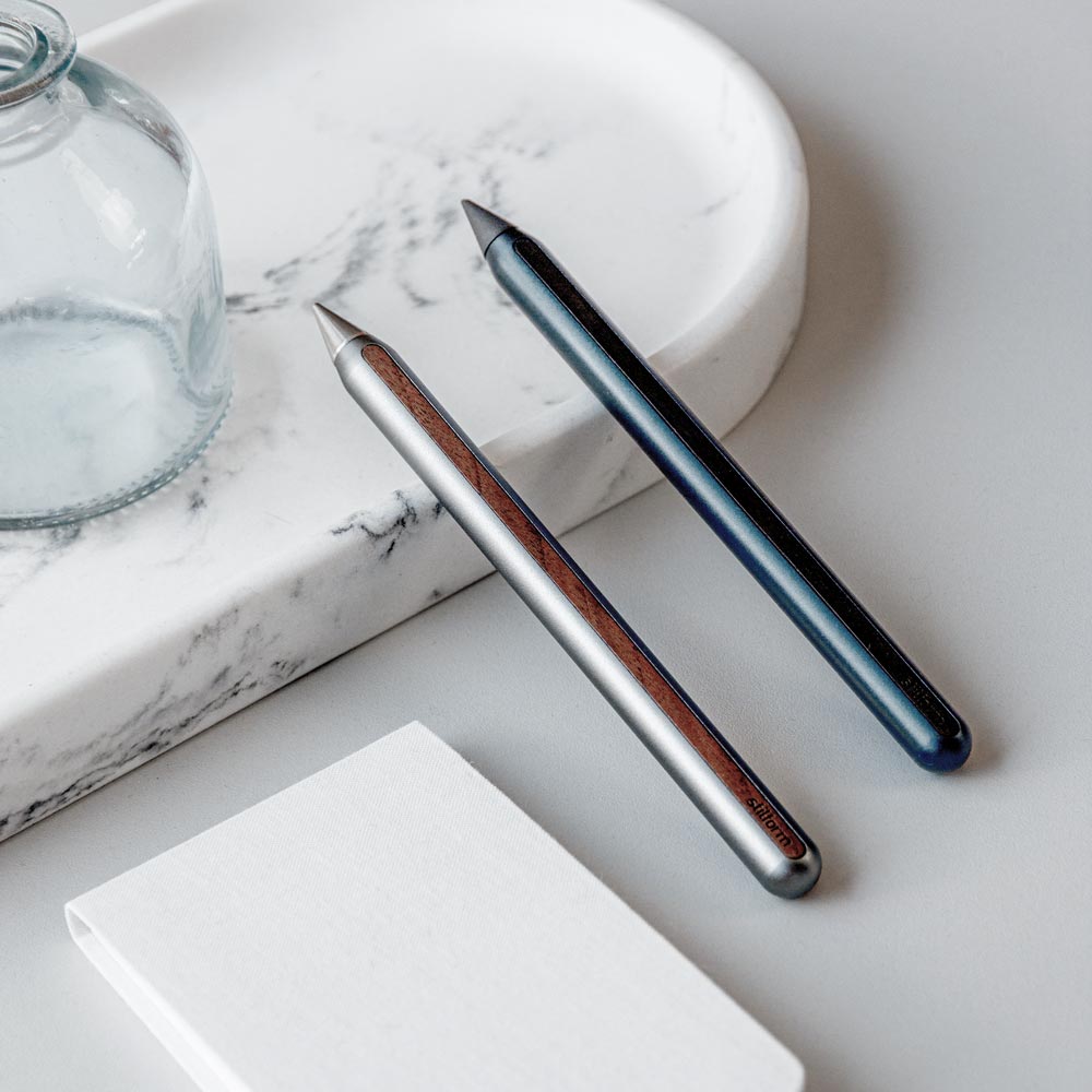 In need of a pencil for note-taking or just a quick sketch? Made possible by Aeon's neodymium magnet, you can switch freely between an "eternal" metal tip and a graphite tip for different pencil uses.