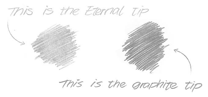 The sketchers choice. For a more conventional pencil experience, just switch to the graphite tip. Its strokes are darker but easily erased too.