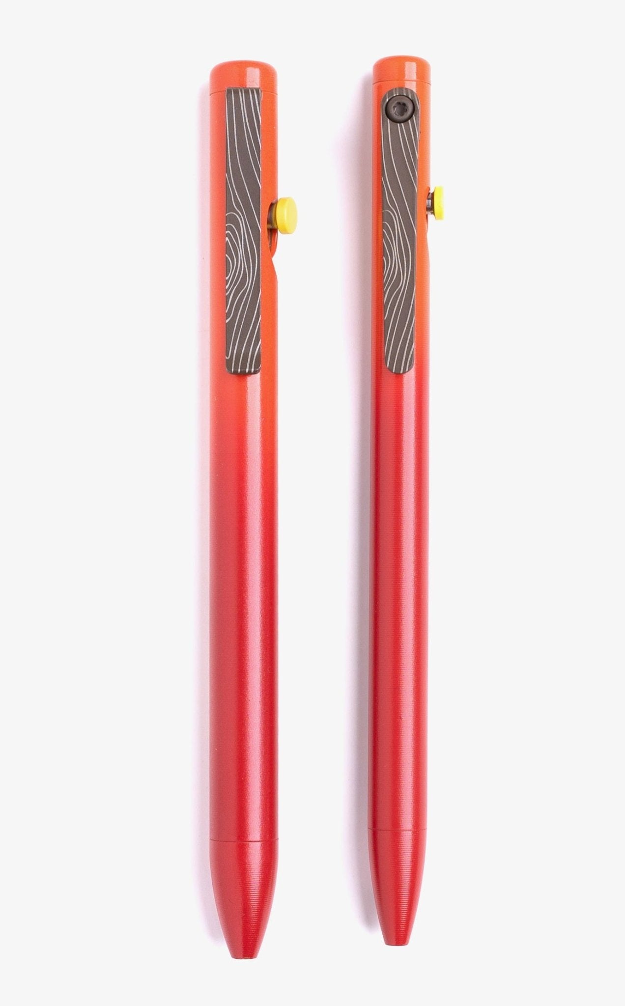 For a million years or more humans and our early ancestors have used fire as a tool to keep warm, cook meals, provide light in darkness, and offer protection from predators. It's also the perfect excuse to gather together and burn a few marshmallows. The first Seasonal Release built on our Bolt Action and Slim Bolt Action models, Ember is inspired by the gift of fire from Prometheus – treated with a red-to-orange gradient on the body, yellow accents on the bolt and channel, and a subtle, metallic clear coat for some sparkle. Topping it off is a brown clip with a woodgrain, laser-engraved pattern to add some fuel to the proverbial fire.Features:
