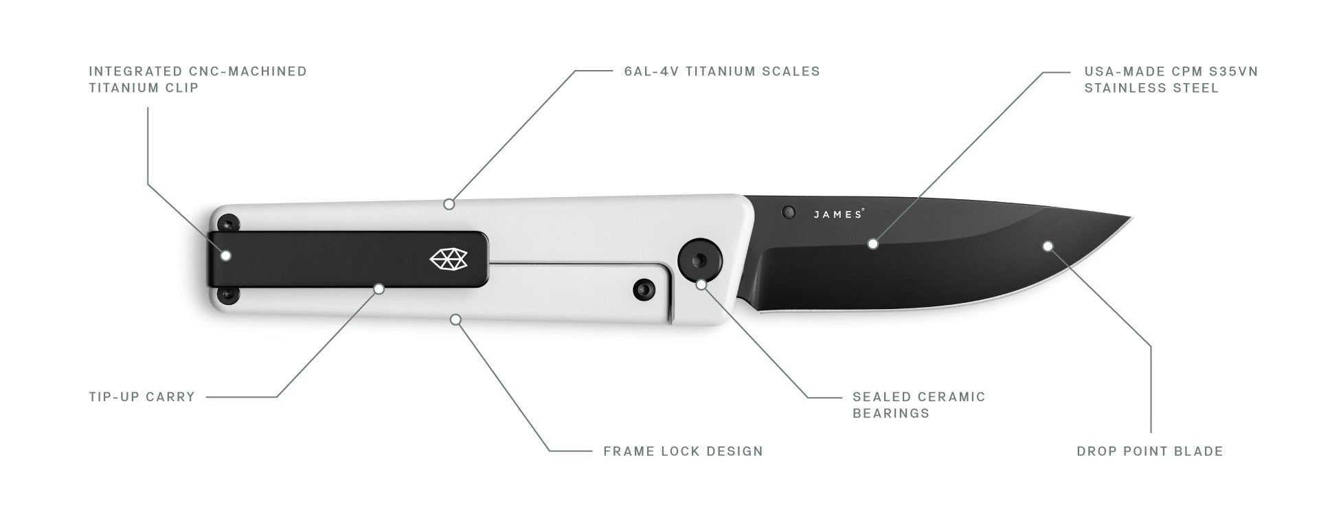 The Chapter is where it all started for us. This was our very first knife; the one that put us on the map, and made people pay attention. It’s been a decade since we first launched the original Chapter, and The James Brand has learned, changed, and grown a lot since then. We are proud to bring some of that knowledge and wisdom to this latest iteration of our original knife.The Chapter 2 features a tip-up carry orientation and a fully-machined titanium pocket clip. Featuring a stainless steel s35vn blade, running on sealed ceramic bearings, The Chapter 2 balances a minimal aesthetic with some of the very best in materials and technology. The new Chapter features more sophisticated lines, but the design still maintains the iconic Chapter form. This was our very first knife for a reason. We’re proud to bring you the next chapter of the Chapter.