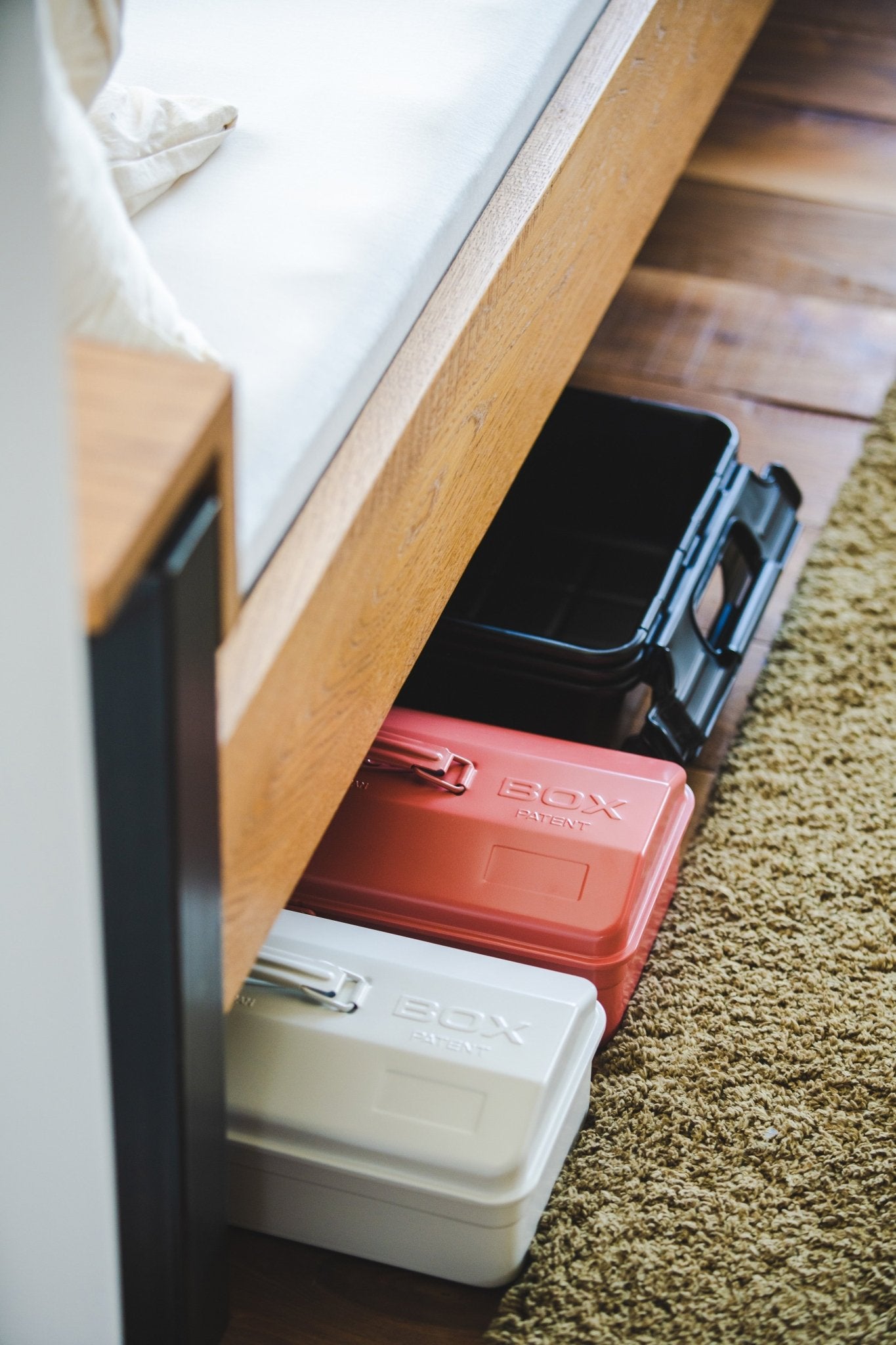 Toyo Steel Co. Ltd, born in 1969 in Osaka, is the specialist of the Toolbox "tool box" renowned for its many qualities: lightweight, portable, extremely durable because designed with a single piece seamless. All details are well thought out: rounded edges not to injure, retractable handle, lockout loop, embossed top/bottom allowing stacking. The use of the tool box is to be diverted, it finds its place in all the rooms of the house for storing pencils, sewing threads, telephones, glasses, kitchen utensils ... and of course tools.