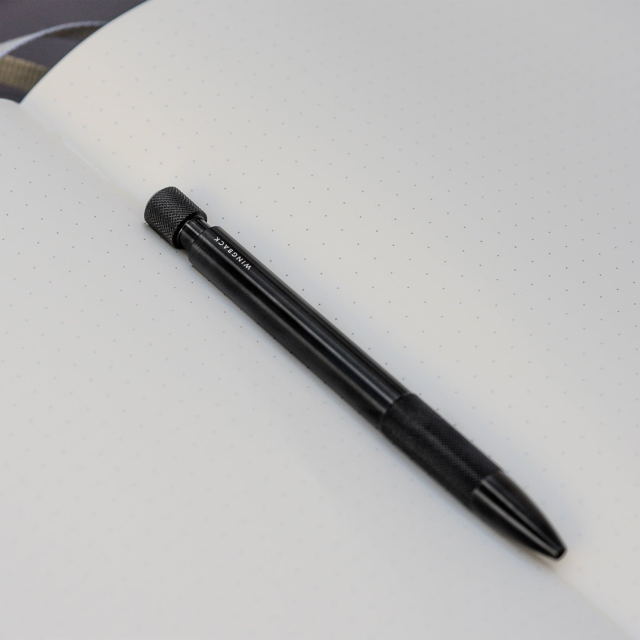 The Wingback Mechanical Pen has been designed to last for decades, not months, epitomising our “buy once” philosophy. Machine turned from a solid bar of aerospace-grade stainless steel, it is reassuringly weighty in the hand with a wide diameter to reduce writing fatigue and encourage time to be taken with every pen stroke. A satisfying single handed twist locks the nib mechanism in place.