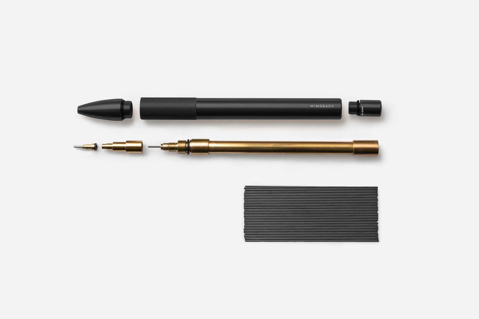 Experience writing excellence with the 2023 Red Dot award-winning Wingback Mechanical Pencil. Crafted from aerospace-grade black steel, this pencil boasts a stylish knurled grip and exquisite finish that elevates your sketching and writing experience.