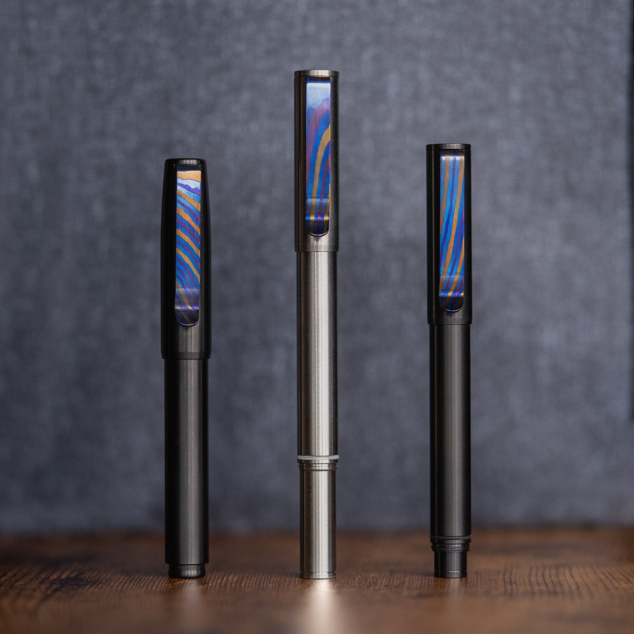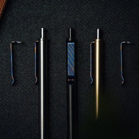 These titanium Damascus pen clips are perfect for making your pen uniquely yours. Every clip is polished and torched by hand, every piece has it's unique pattern and colors, it's a perfect way to make your pen special!