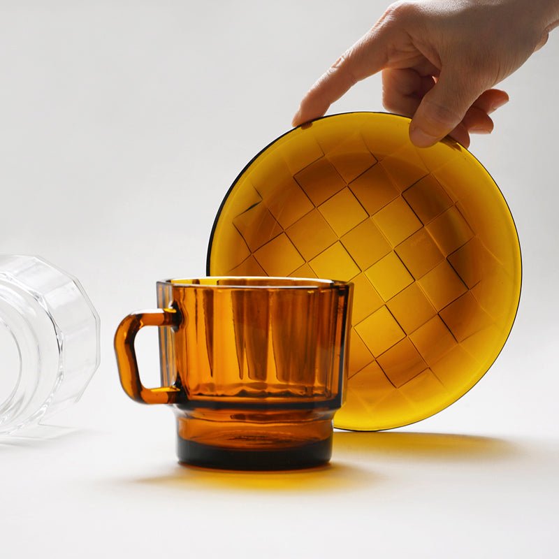 Recycled Glass by Spring Pool Glass. Lead-free. Note: Slightly tiny bubbles or traces might be on the surface, due to the hand-made manufacturing process with recycled glass.