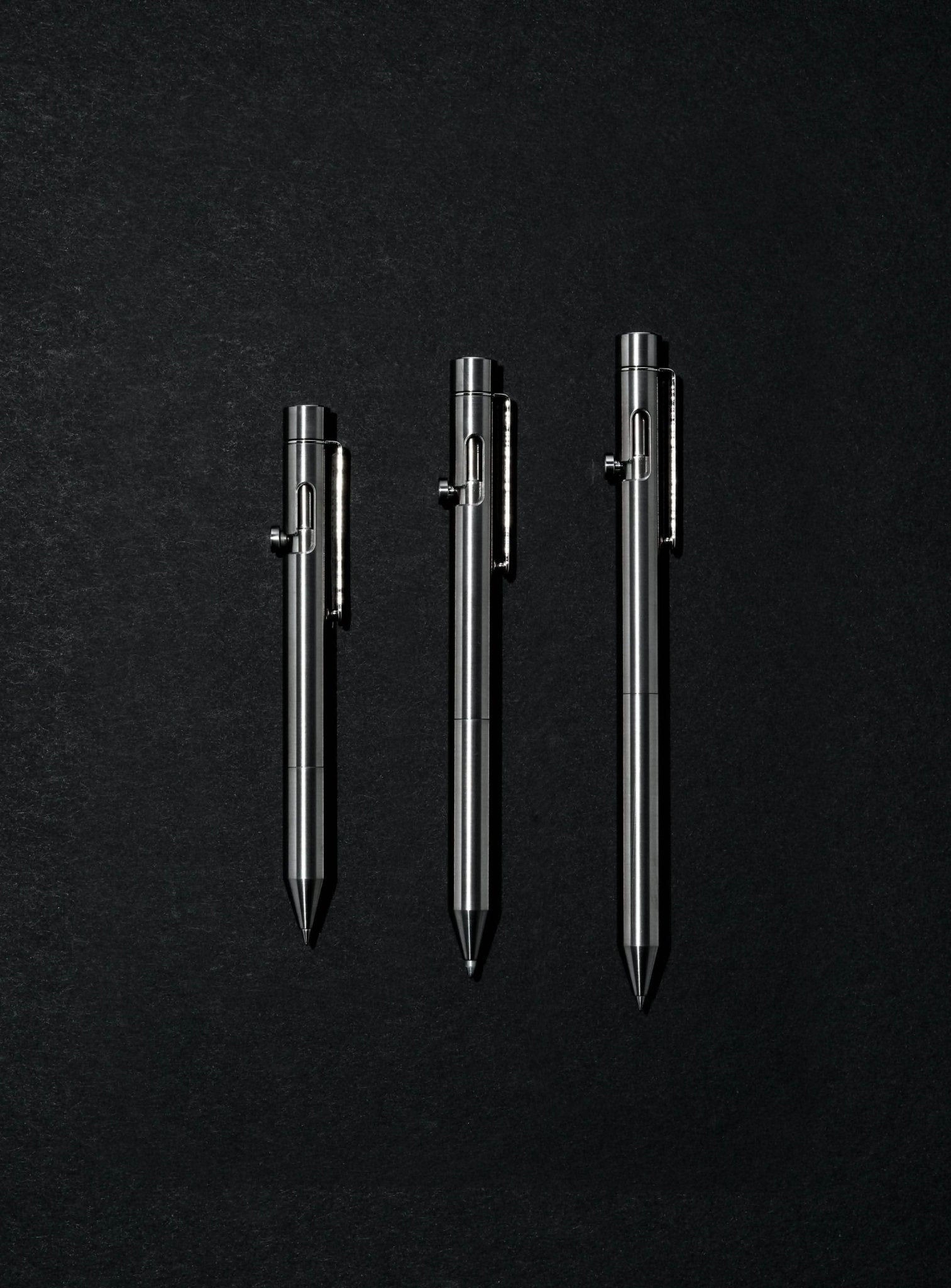 The first pen recreated in-house, the Bolt Action Pen v.02 offers all as did its predecessor, but with noticeably smoother action. In addition to design upgrades such as chamfered edges around the bolt track and a newly fitted thread with o-ring, the Bolt Action Pen v.02 now sports an INVENTERY signature emblem in gold or silver. Overall, v.02 offers nuanced design additions but, most noticeably, greater precision. If you own the first version, you’ll feel the immediate difference with this one.