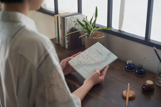 The limited edition notebooks feature original fabrics from fashion label Aseedonclöud by Kentaro Tamai. The label develops each seasonal collection around a fictional story. The 2022 Autumn Kiokushi collection follows the journey of mapmakers who catalogue our memories. Inspired by the notion of the written record, these fabrics make a fitting addition to our tools for writing.
