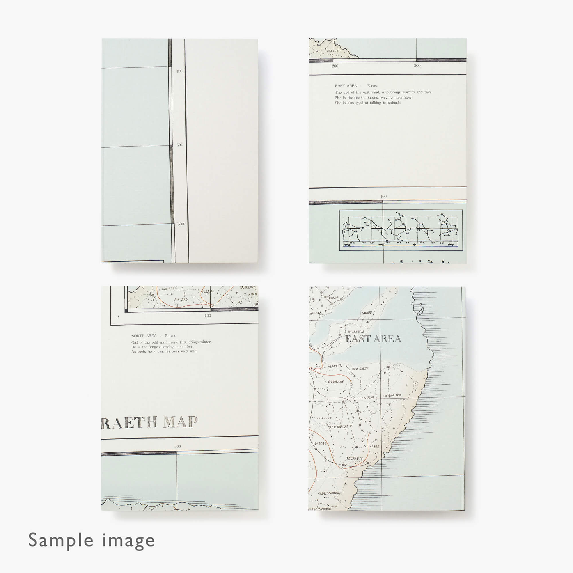 The fabric features a map drawn by the mapmakers of memories. Place names reference the constellations used to map their locations. In a playful detail, areas pioneered during summer have inverted names, while the mapmakers have named their favourite places after themselves.