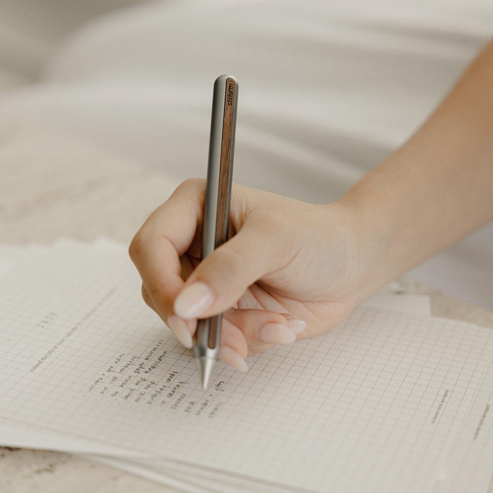 Clean and functional, Aeon constitutes the purest design language of Stilform’s pen collection. The distinctive flat sides along the pencil, decorated with tasteful veneers, stop pen-rolling effectively.