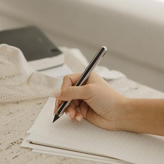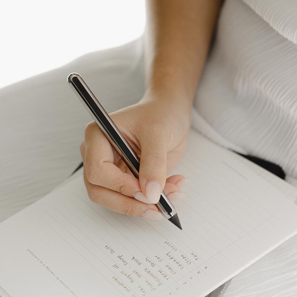 In need of a pencil for note-taking or just a quick sketch? Made possible by Aeon's neodymium magnet, you can switch freely between an "eternal" metal tip and a graphite tip for different pencil uses.
