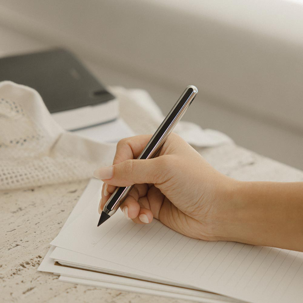 Start writing in metal. This long-lasting metal writing tip is truly magical - The natural and non-toxic Eternal alloys join together to create pencil-like marks. This tip hardly wears itself down over time!