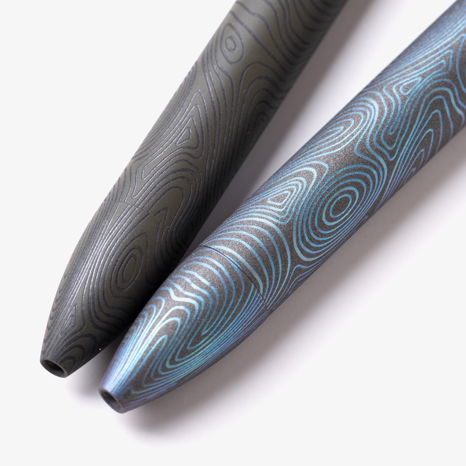 Earlier this year, we asked members of the Tactile Turn Fanpage to brainstorm what they would like to see in future Limited Releases. After a few days of discussion, crude AI concepts, and polls, a topographical Bolt Action pen rose to the top. The first variant features OD green and matte black Cerakote with a black laser engraved topo pattern while the second is a silvery-gray color called Tungsten, which is laser engraved and then anodized electric blue. This is the first release that features full rotary laser engraving done in house and certainly not the last.