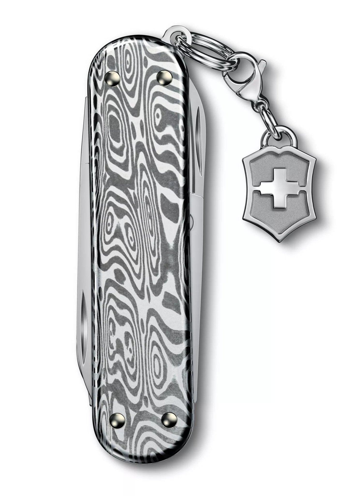 The epitome of resilience, this compact pocket knife exudes perfection. Crafted from 333 layers of ultra-strong Damasteel® arranged in a unique Odin Heim pattern, the Classic SD Brilliant Damast is as individual and hard working as you are. The striking design and attachable charm make this a standout multi-tool with peerless elegance.